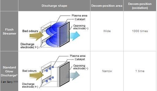 - Máy lọc không khí Daikin cùng công nghệ độc đáo Flash Streammer tạo dòng xoáy, hình thành dòng ion plasma với tốc độ cao phân hủy oxy hóa, loại trừ các vi khuẩn, vi sinh, nấm mốc, các chất gây dị ứng và các độc chất nguy hại xuất hiện lơ lững trong khu vực sống, đồng thời rút ngắn thời gian phát tán khu vực rộng theo cả 3 hướng, giúp các electron dễ dàng va đập với các phân tử oxygen ( O2 ) và phân tử Nitrogen ( NO- ) làm tăng tốc độ phân hủy oxy hóa, phản ứng diễn ra nhanh gấp 1000 lần so với các thiết bị lọc không khí khác, thêm nữa chức năng inverter ( biến tần ) giúp cho việc tiêu thụ điện năng được kiểm soát chặt chẻ, tiết kiệm điện hơn.