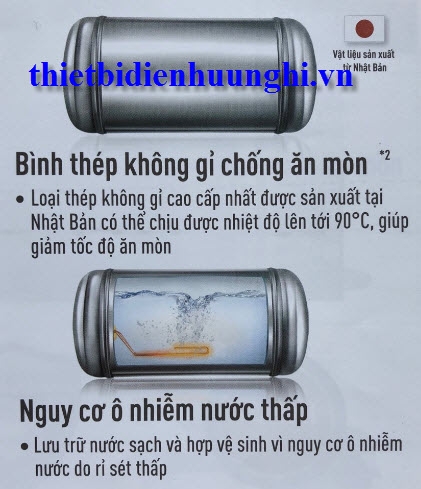 - Dòng máy tắm nước nóng có bình chứa bằng thép không rỉ, thường có dung tích từ 15 lít, 20 lít, hoặc 30 lít được gá lắp cố định vào tường bằng móc thép treo và đai thép định vị
