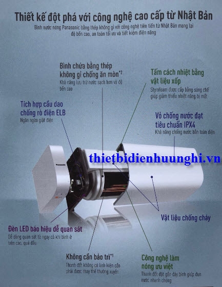 * Linh kiện cấu thành sản phẩm máy nước nóng Panasonic làm từ nhựa cao cấp chống cháy va đập, kháng khuẩn Ag+, tích hợp cầu dao tự động chống rò điện RCCB 15mA chất lượng thỏa mãn các tiêu chí an toàn và môi trường khắt khe của Châu Âu ( RoHS ), ISO14001, IS9001, chống nhiễu điện từ EMC...
