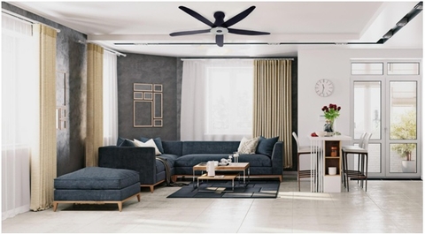 Quạt trần 5 cánh DC, tiết kiệm điện, điều khiển từ xa, chức năng gió tự nhiên, màu nâu gụ.