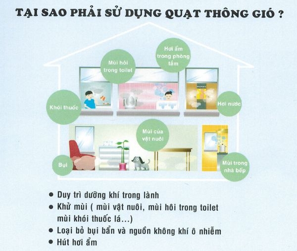 - Dòng quạt hút thông gió nóng và không khí độc hại trong nhà ra bên ngoài, gắn âm trần ( thạch cao, tấm omron...) không có ống dẫn, giúp cho lượng không khí thoát nhanh và thay thế không khí trong lành ngoài trời vào nhà, giúp khu vực sống luôn đầy ắp khí tươi, tránh nấm mốc, vi sinh, vi khuẩn có hại trong nhà phát sinh.