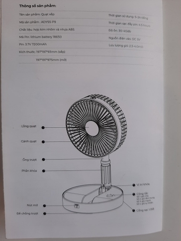 - Không sử dụng nguồn cấp khác với yêu cầu hướng dẫn của quạt sạc ( có thể gây hư hỏng nguồn sạc trong quạt )